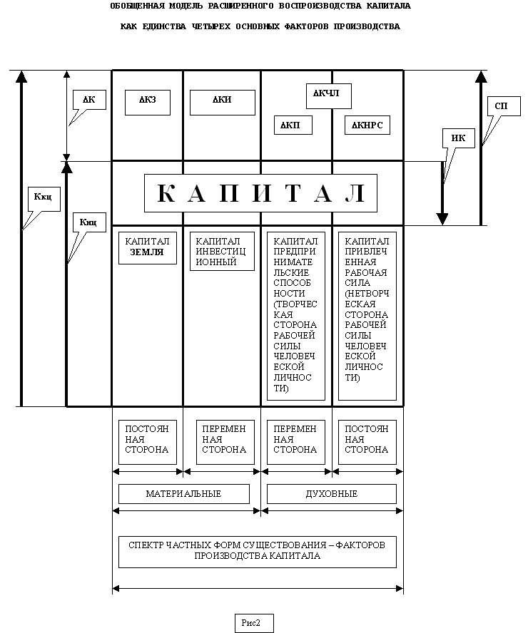 Предисловие. Предмет политической экономии. ПОЛИТИЧЕСКАЯ ЭКОНОМИЯ - ЭТО НАУКА О ЗАКОНАХ РАЗУМНОГО УПРАВЛЕНИЯ ОБЩЕСТВЕННЫМ РАЗВИТИЕМ. Другие законы изучаются в рамках других наук, поэтому в рамки предмета политической экономии попадают способы производства общественной жизни как единства цели общественного развития и формы общественных связей. Всё остальное рассматривается постольку, поскольку человеческое общество является частью природы в целом и взаимодействует с ней. Капитал - центральное понятие политической экономии. С абстрактно общего определения капитала политическая экономия начинает и последовательно восходит к конкретно всеобщим определениям. АБСТРАКТНО ОБЩИЕ ОПРЕДЕЛЕНИЯ КАПИТАЛА Капитал - это самовозрастающий живой общественный организм. В предельно общем смысле капитал есть общественный организм, целесообразно и разумно воспроизводящий себя в расширенном масштабе. КАПИТАЛ - это богатство (благо, ценность, стоимость, полезность, достояние и т.п.) используемое как средство производства еще большего богатства. Капитал представляет собой общественно-полезное единство материальных и духовных факторов производства, где творческая сторона рабочей силы человека является системно образующим фактором. С позиций современного естествознания все ресурсы природы, включая рабочую силу человека, можно рассматривать как обобщенные источники мощности. Взятые сами по себе, они есть стихийные силы природы (сокрытые вещи, сокровища, вещи сами по себе), но не капитал. Взятые в единстве с разумной рабочей силой человека и используемые для своего возрастания, они суть капитал. Другими словами, мы можем определить капитал как единство всех природных ресурсов с разумной рабочей силой человека в процессе самовозрастания или как обобщенную мощность, направленную на производство еще большей мощности в общественно-полезной форме. Ценность обобщённой мощности как капитала определяется величиной и умением пользоваться, что в свою очередь зависит от количества знаний, уровня развития мышления и системы производственных отношений. Капитал не есть фактор производства наряду с другими факторами производства. Капитал есть единство всех факторов производства в процессе самовозрастания в общественно-полезной форме. ТРУД - это способ преобразования вещей самих по себе, то есть СОКРОВИЩ, в вещи для нас в общественно полезной форме, то есть в КАПИТАЛ. Другими словами ТРУД ЕСТЬ ЖИЗНЬ КАПИТАЛА, способ его существования. Наглядно процесс общественного воспроизводства капитала можно интерпретировать следующей геометрической иллюстрацией (см. рис.1) 1) процесс износа капитала, иначе это называют потреблением, который включает в себя износ накопленного капитала за предшествующий период и износ капитала вновь произведенного за последний расчетный период; 2) процесс производства капитала, который включает в себя создание фонда возмещения текущего производственного износа капитала и фонда процента на капитал. Фонд процента на капитал образует фонд накопления. Отношение фонда накопления к накопленному капиталу называется нормой накопления или просто процентом на капитал. Из выше изложенного следует, что процент на капитал является интегральным показателем темпа общественного развития. Стремясь максимизировать темпы обще
