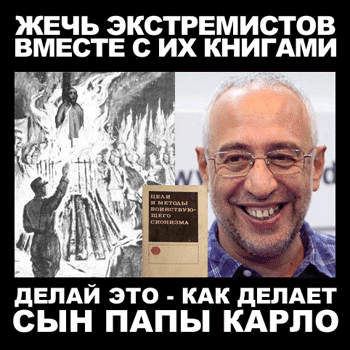 |  Активный участник    Группа: Пользователи Сообщений: 513 Регистрация: 15.11.2010 Из: Москва Пользователь №: 2193  | Я к тому ещё, что люди эти, столь непереносимые по своим установкам ("взглядам" сказать не получается) и по форме их насаждения, в быту - вполне нормальны и даже милы. Доброжелательны, не склочны, готовы проявлять товарищество. Если бы не их разрушительная деятельность... Как говорил принц Гамлет: "Если бы не мои дурные сны..." http://www.kprf.org/attachment-attachmenti...1284913508.html |