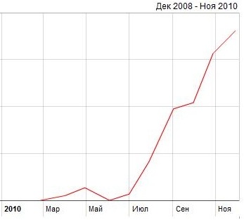 Сванидзе, Млечин и Кургинян имели свою аудиторию и до выхода передачи. Интересно сравнить как эти «исходные позиции», так и изменения интереса к ним в ходе передачи. Сванидзе Млечин Кургинян 01.12.2008 - 31.12.2008 2845 0 3776 01.01.2009 - 31.01.2009 2658 0 3973 01.02.2009 - 28.02.2009 2544 0 2780 01.03.2009 - 31.03.2009 3908 1703 2973 01.04.2009 - 30.04.2009 2957 1387 2255 01.05.2009 - 31.05.2009 3065 1491 4993 01.06.2009 - 30.06.2009 2976 1661 3167 01.07.2009 - 31.07.2009 2629 1486 2660 01.08.2009 - 31.08.2009 2954 1715 2774 01.09.2009 - 30.09.2009 3150 966 3129 01.10.2009 - 31.10.2009 4524 1695 3344 01.11.2009 - 30.11.2009 3756 1665 3933 01.12.2009 - 31.12.2009 4207 3012 3698 01.01.2010 - 31.01.2010 4105 2752 4418 01.02.2010 - 28.02.2010 4288 2667 4268 01.03.2010 - 31.03.2010 5802 3266 4695 01.04.2010 - 30.04.2010 5351 3746 4693 01.05.2010 - 31.05.2010 4615 3442 3907 01.06.2010 - 30.06.2010 3623 3214 4025 01.07.2010 - 31.07.2010 6261 4764 6442 01.08.2010 - 31.08.2010 7844 8891 13520 01.09.2010 - 30.09.2010 13558 8529 13016 01.10.2010 - 31.10.2010 11284 9905 16773 01.11.2010 - 30.11.2010 11627 9944 19153 Из цифр и графика видно, что в наблюдаемый период все три фигуры вызывали некоторый интерес со стороны интернет-аудитории. При этом любопытно, что «телемэн» Сванидзе и Кургинян вызывали интерес примерно у одного количества интернет-пользователей, Млечин — несколько меньше. Передача «Суд времени» привела к повышению этого интереса. Но, как нетрудно заметить — вначале это повышение было примерно одинаковым, затем рос интерес к Сванидзе и Кургиняну и на последнем этапе — только к Кургиняну (от исходного уровня — в 4 раза)! Еще одно доказательство яркости и убедительности Сергея Ервандовича и, вероятно, интереса к его позиции. Посмотрим на уровень интереса к различным иным личностям (максимальные месячные значения, опять же — не претендуя на полноту). Телевизионные «деятели». Познер 49 713 Леонид Парфенов 52 626 Мария Ситтель 42 240 Ксения Собчак 117 383 Публицисты и аналитики. Проханов 17 918 Хазин 39 468 Максим Калашников 16 445 (26 221 в сентябре 2009 — письмо от Калашникова показал Президент по ТВ) Делягин 21 868 Кара-Мурза 9 069 Политики. Явлинский 21 868 Немцов 57 764 Каспаров 37 820 Лимонов Эдуард 7 665 Жириновский 105 415 Чубайс (политик?) 18 040 Горбачев 85 333 Олигархи. Абрамович 83 890 Дерипаска 64 505 Прохоров 145 813 Потанин 43 041 Ходорковский 86 338 Березовский 113 217 Титаны. Сталин 236 886 Ленин 575 039 Маркс 231 947 Наши руководители. Путин 1 309 837 Медведев 876 541 Из приведенных данных видно, что интерес к ведущим передачи «Суд времени» вырос до примерно среднего уровня интереса к публицистам и аналитикам (из всех несколько выделяется М. Хазин, один из авторов теории кризиса), что является уже неплохим результатом. Однако, этот интерес ниже интереса к другим «категориям» личностей — к раскрученным телеведущим, олигархам, некоторым политикам (категорию эстрадных звезд и прочих развлекателей можно и не смотреть — и так понятно, интерес к Пугачевой, например, близок к уровню Медведева — 600 тысяч...). Интерес к Ленину, Сталину, Марксу во многом определяется учебным процессом, но — не так значительно, как к теориям, летнее падение около 50%. Как вы могли заметить, интерес к Путину выше в полтора раза, чем к Медведеву (на 49%). Любопытно... Что бы это значило?.. Поинтересуемся заодно, насколько интересны послания Президента: в ноябре 2009 года - 103 750 запросов, затем практически полное исчезновение, за декабрь 2010 года данных пока нет, но за вторую неделю декабря — порядка 150 тысяч... Не сказать, что интернет-аудитория сильно заинтересовалась. Да и «вопросы Путину» не сильно затронули — 44 373 запроса в 2009 году и за вторую неделю декабря 2010 — 70982. А каков интерес к главным Пи-Ар мероприятиям текущего столетия? Олимпиада-2014 — 23 683, ч