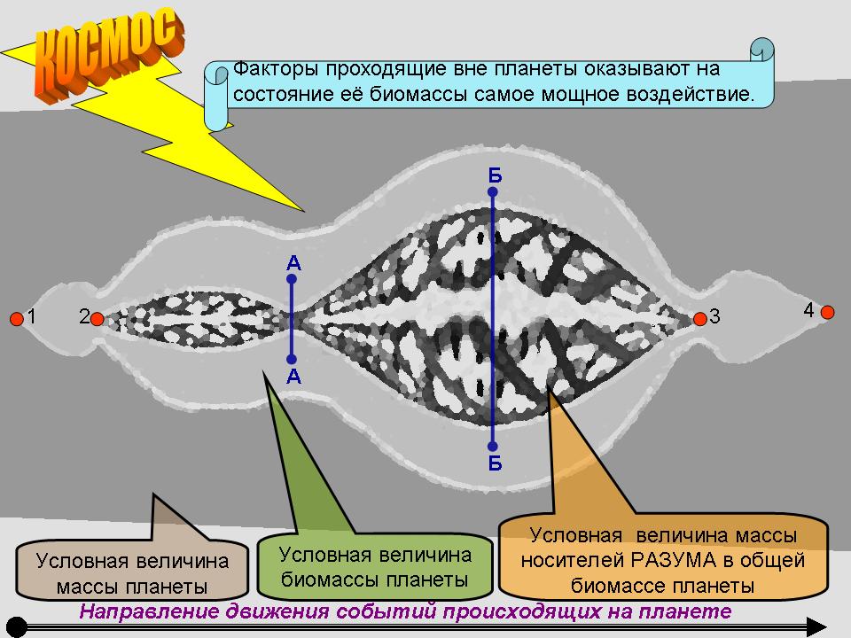 Мёртвую материю можно отнести к грубой организации пространства и времени, где факторы хаоса и случайности формируют многоуровневые состояния отношений вещества и энергии. На одном из этих уровней появляется перспектива возникновения органической материи. Если в дальнейшем развивающиеся события складываются удачно, то результат очевиден - возникает жизнь. Живая материя заключает в себе более утончённую организацию, распределяясь между этажами условно выделяемых сосредоточений биосубстанции и биоэнергии. "Клякса" биомассы, образовавшаяся на нашей планете, оказалась настолько крепко пронизана всевозможными взаимозависимостями между каждым элементом её представляющим, что на данный момент трудно определить в какую сторону способно повернуться дальнейшее развитие даже при незначительной потере какого-либо из компонентов. А самое главное - как это отразится на человеке. Реализуя свою потенцию в пошаговом движении от простого к сложному, оформляясь, структурируясь и выводя многоуровневую систему живого на режим сосуществования, биоматерия многие годы подводила своё состояние к образованию РАЗУМА. И уж наверняка не для того чтобы ОН стал разрушителем своего начала. Это только на картинке можно узреть подоплёку пожирания, змеёй себя любимую начиная с хвоста. Уместно поставить вопрос – для чего биосубстанция вывела РАЗУМ? Ответ напрашивается сам – используя его потенциал спастись от разрушительных сил, наличествующих в мёртвой матерее. А спастись – значит закрепиться в космосе с правом решать его и соответственно свою судьбу. Человек став носителем РАЗУМА пока не понял и не разобрался до конца, для чего он даден. Почему-то решил, что ЭТО будет служить ему для осуществления сиюминутной прихоти и наслаждения, а вовсе даже не той "кляксе" биомассы, которая творила его для решения более серьёзных дел. Всегда желательно помнить, что для нас хозяйка природа-мать и если что-то пойдёт против её сценария, она способна с лёгкостью объявить – «я тебя породила, я тебя и убью». Нам с "неба" упал РАЗУМ, способный обеспечить уникальные прогулки по пространству – времени. Надо ли этим воспользоваться? Вопрос, включающий в себя массу подвопросов. И тащить то с собой необходимо воз биомассы. Индивидуальность сегодня может вынырнуть из неё на короткое время, но потом приходиться окунуться обратно, чтобы восстановить свои силы и энергетику. Похоже, человеку придётся проталкивать в космос биосубстанцию впереди себя, а самому двигаться следом под её защитой. Мало того человек неправильно определился в понимании главного правила которое было использовано биосубстанцией в его взращивании. Результатом этой ошибки стало хождение по малому кругу эволюционной цикличности – первичный бульон органики, потом человек, и опять первичный бульон и т.д…. Сбитый столку кучкой психически больных не подконтрольных вожаков, человек никак не может, во-первых, найти, во-вторых, открыть ту дверцу, через которую доступно попасть на огромные просторы реальной вечности. Поэтому по сей день ведёт "норный" образ жизни, занимаясь "мышиной вознёй", бытовухой. И каждый раз создаёт ситуации, при которой ставиться на себе крест при возможности жить. Сосуществование является базовым требованием наличия жизни, а вовсе даже не конкуренция, вознесённая социумом на щ